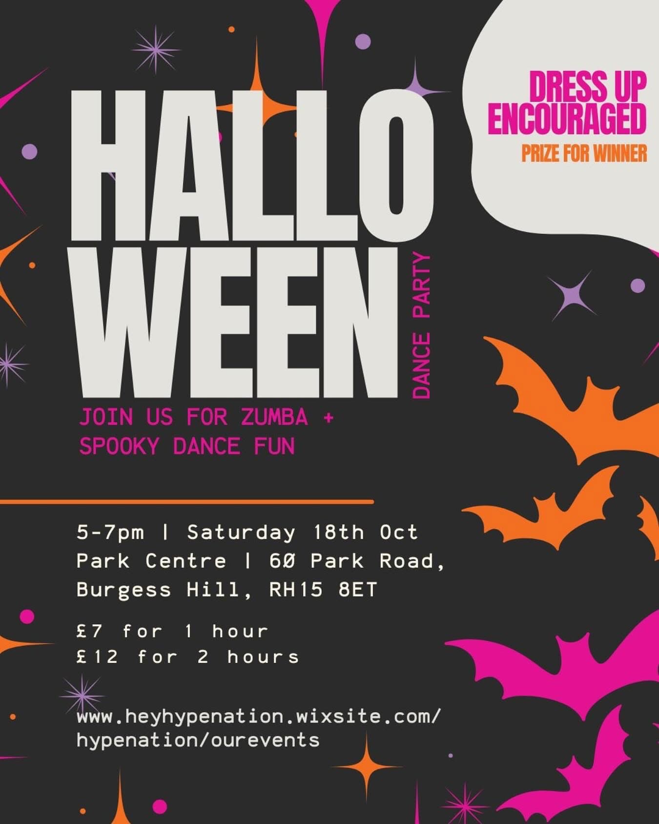 2 hours of spooky Zumba + dance fun – costumes, good vibes, and monster-mash energy guaranteed!