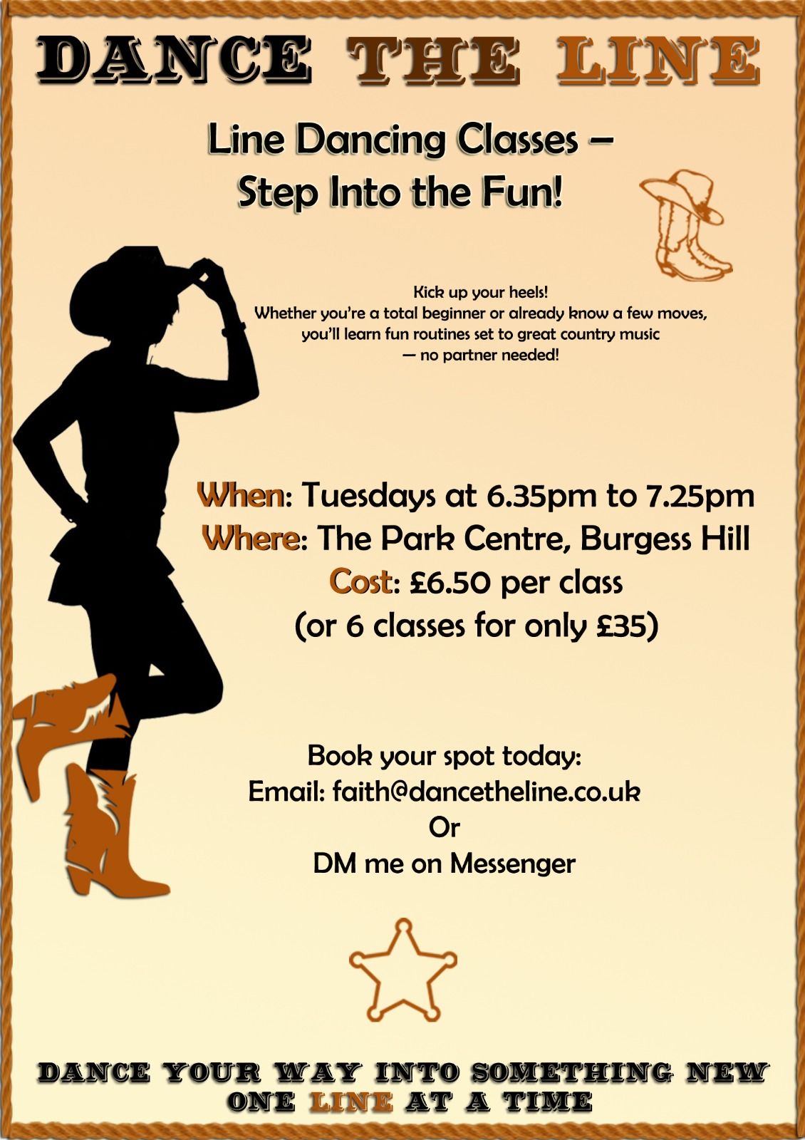 Join our fun and friendly line dancing classes in Burgess Hill at Park Centre. Open to ages 15 and over, men and women welcome. Enjoy upbeat music, easy to follow routines and a relaxed social atmosphere. Cowboy hats and boots are encouraged, so come along, get moving, meet new people and have fun. Yeeha.